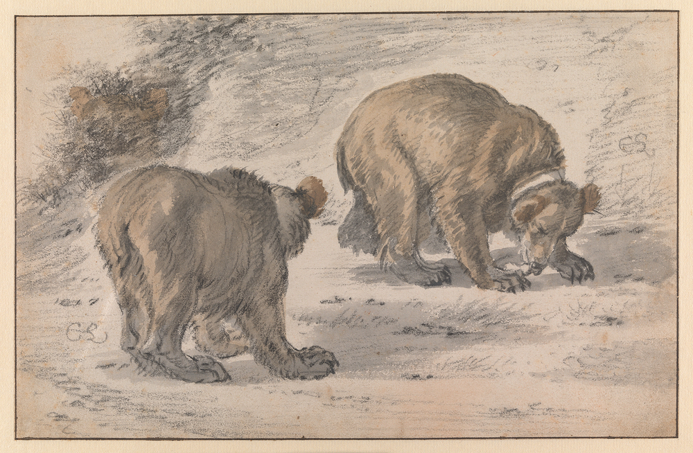 (?) Veiling Bernard 1834, p. 26, Kunstboek C, nr. 8: 'Twee stuks met Beeren en een Kameel, als voren (met zwart krijt), door Saftleven' (f 40,-); (?) Veiling Danckerts 1849, p. 10, Kunstboek D, nr. 113: ' Twee stuks Studiën van Beeren, met zwart krijt, o.i. en bruine inkt, door denzelfde (Cornelis Saftleven)' (f 90,- , aan Brondgeest); Collectie C.J. Fodor, legaat 1860