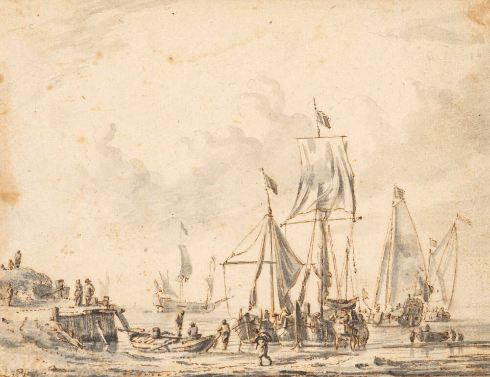 - Schepen bij een aanlegsteiger, 1680 - 1689