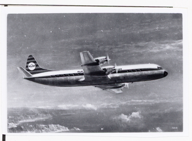 - Prentbriefkaart met KLM's Lockheed prop-jet Electra (naar Victor Trip)