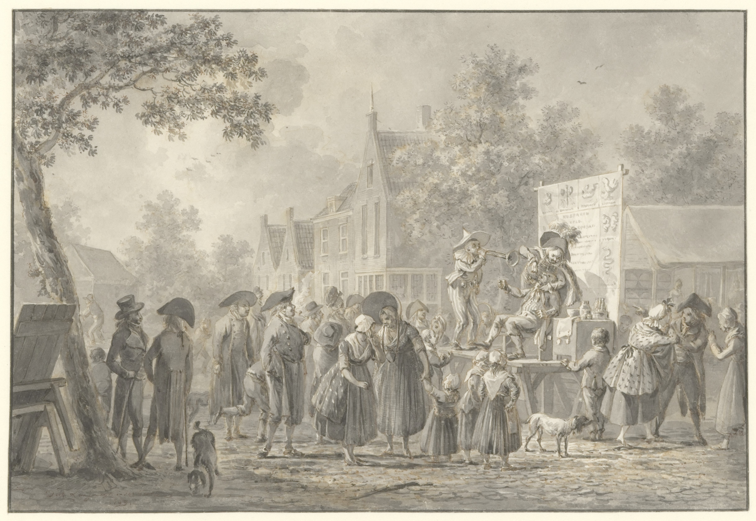 Dirk Langendijk, voornamelijk bekend om zijn oorlogstaferelen, waagde zich af en toe ook aan wat minder gruwelijke onderwerpskeuzes. Rond 1800 tekende hij verscheidene series, waaronder die van de maanden van het jaar, de jaargetijden, de leeftijden van de mens en de vier elementen. Deze vijf tekeningen vormen samen zo’n serie: die van de vijf zintuigen (TA 10653-7). De vijf tekeningen vormen duidelijk een set, aangezien ze elk op een bijna identiek formaat zijn getekend (ca. 135 x 200 mm), met dezelfde materialen en met allemaal dezelfde kaderlijn. Ook is elk van de tekeningen gedateerd en gesigneerd: elk van de tekeningen is gemaakt in 1799, behalve die van de reuk – die tekende Langendijk in 1800. Dergelijke allegorische scènes en reeksen werden al gemaakt sinds de middeleeuwen, als ‘leerrijke reeksen’: moraliserende werken, die de toeschouwer bepaalde waarden of wijsheden dienden bij te brengen. Rond het eind van de achttiende – en het begin van de negentiende eeuw waren zulke reeksen populair onder verzamelaars, wat zal verklaren waarom Langendijk ze maakte. “De vijf zintuigen” genoten echter over het algemeen minder populariteit dan andere reeksen, zoals die van de twaalf maanden.