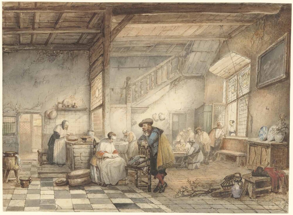 De invloed van de zeventiende-eeuwse genreschilders is onmiskenbaar in het werk van de Belgische kunstenaar Hendrik Leys. In navolging van Jan Steen schilderde hij gezelschapstaferelen in zeventiende-eeuwse interieurs.