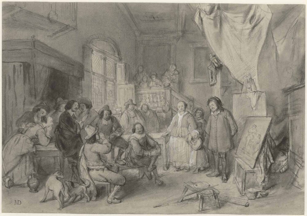 - Jan Steen zijn werk latende bezichtigen (verso: De vechtparij), 1800 - 1899
