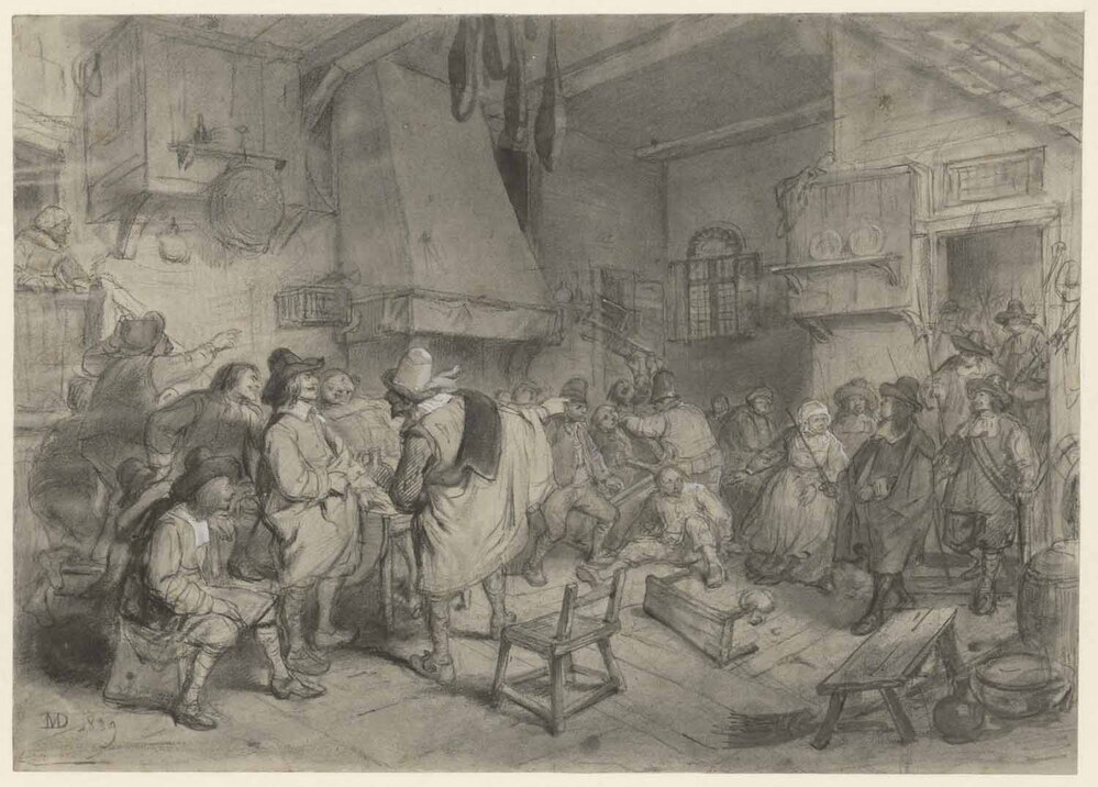 - A. van Ostade in eene herberg waar eenige boeren vechten, 1839