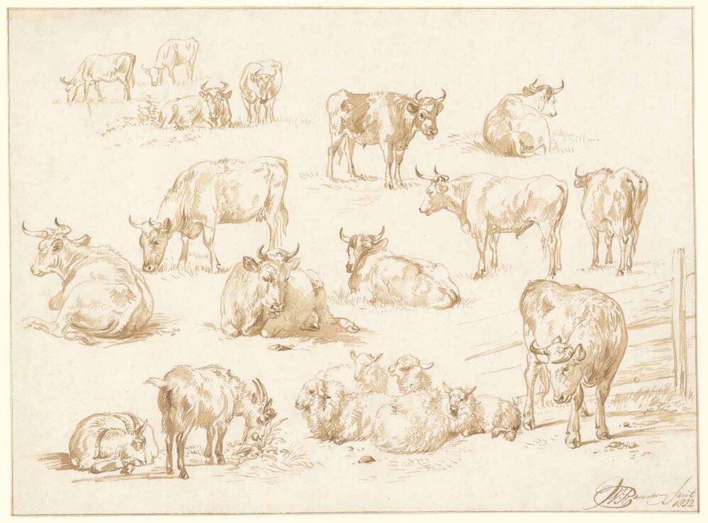 - Een studieblad met staand en liggend rundvee, 1822