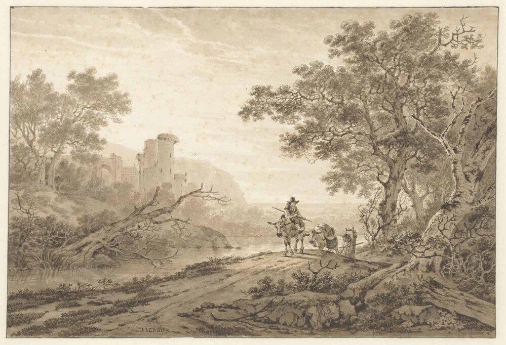 - Een bergachtig landschap bij avondstond, 1775 - 1815