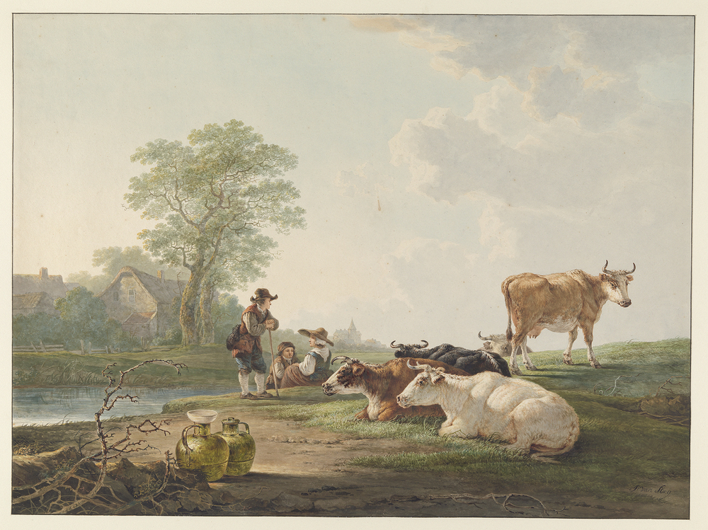 - Landlieden bij rustend vee, in een Hollandsch landschap, 1775 - 1815