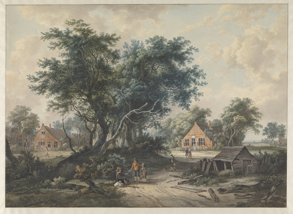 - Naar Hobbema. Boerenwoningen bij hoog geboomte, 1775 - 1815