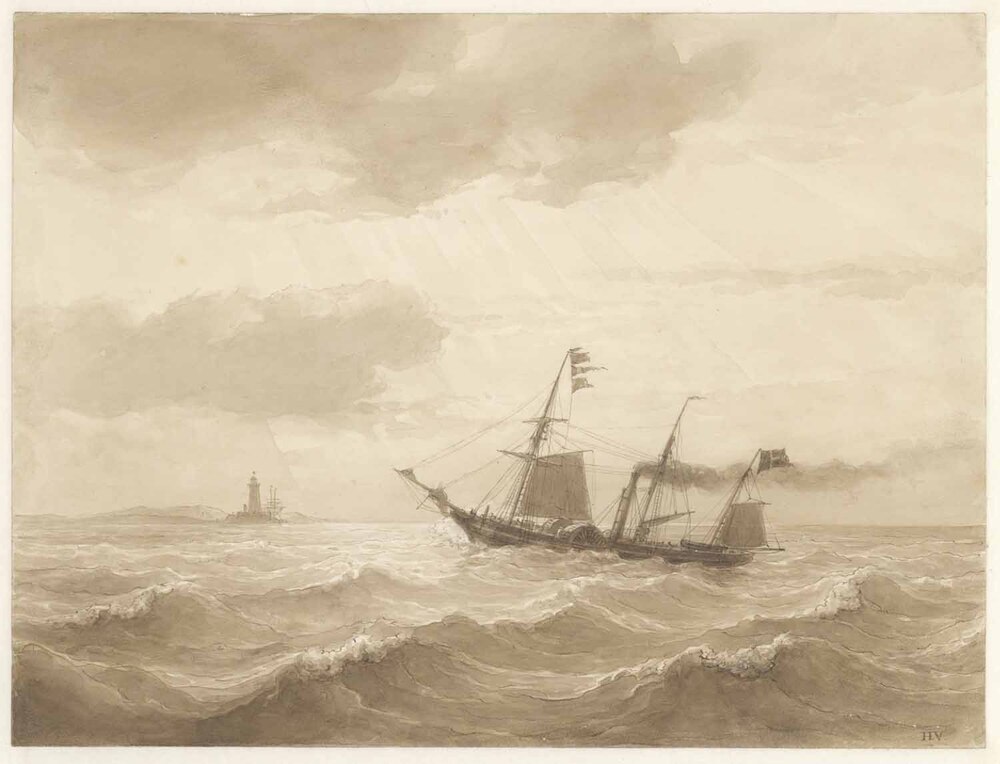 - Een woelend water met eene stoomboot, 1829 - 1878