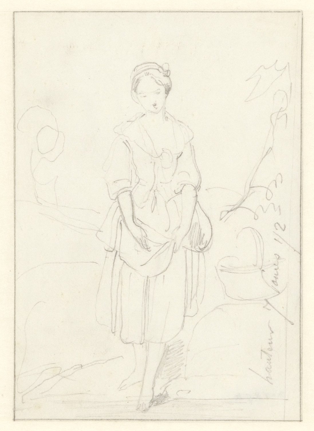 Unlike the other pencil sketch by Beaume, no direct parallel has yet been extablished between this sheet of a girl (done in the idiom of Greuze) and any other work by the artist. It presumably served the same purpose as the previous drawing, namely as a memorandum for the artist’s own use. ( Wiepke Loos)
