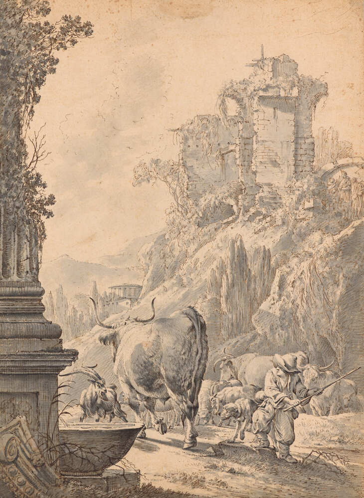 - Een Italiaans landschap met rundvee, 1651 - 1685