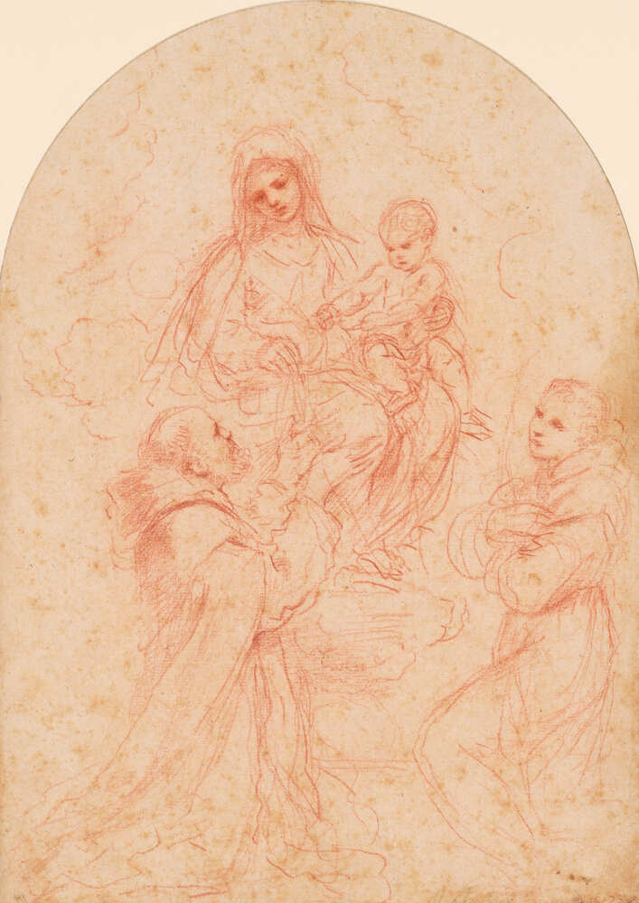 Pierre Crozat, zie r.o. geschreven verzamelmerk (Lugt 2951) voorafgegaan door het nummer 1617; Graaf Moriz von Fries, zie l.o. droogstempel (Lugt 2903); Markies de Lagoy, zie l.o. verzamelmerk (Lugt 1710); C.J. Fodor, zie l.o. op de achterzijde van de doublure verzamelmerk (Lugt 1036), cat. Fodor 1863, nr. 866 als: 'Jacopo Cavedone: St. Petronius en een andere heilige aanbidden de maagd met het kind'