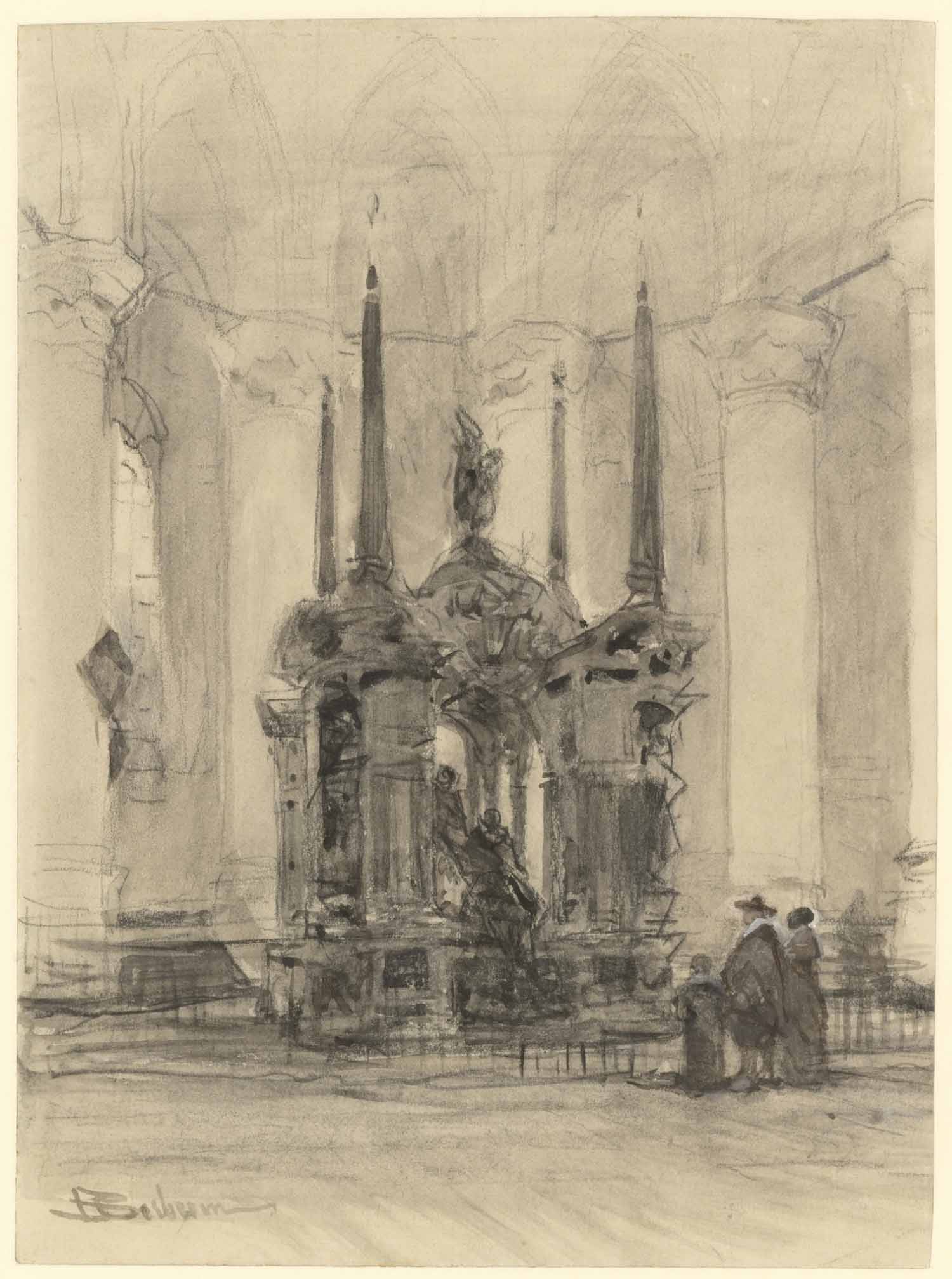 - Een gezicht in de Nieuwe Kerk te Delft met het praalgraf van Willem de Zwijger, 1837 - 1891