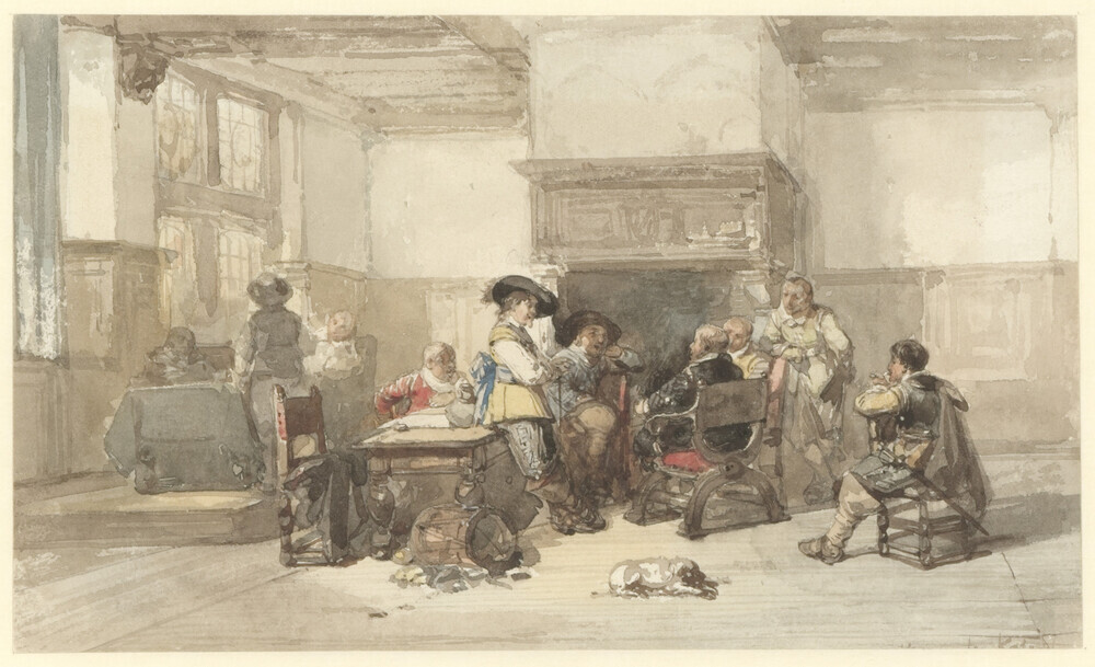 - Officieren bij het vuur in oud-hollands interieur, 1844 - 1891