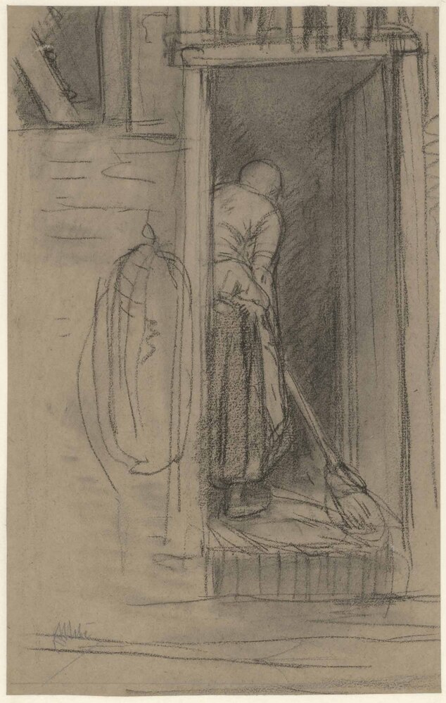 - Schoonmaak in een boerenhuis, verso krabbel, 1865 - 1875