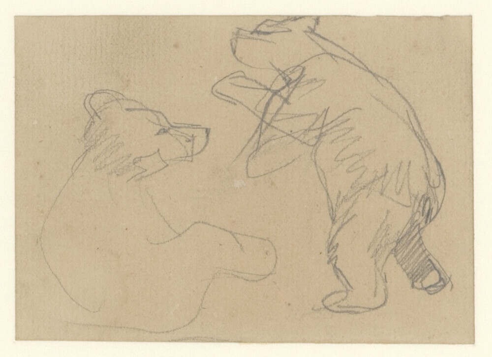 - Studie van twee bruine beren (recto). Dierstudie (verso)?, 1850 - 1899