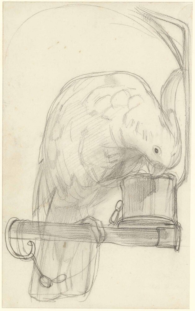 - Witte kakatoe (recto). Papegaaien (verso), 1850 - 1899