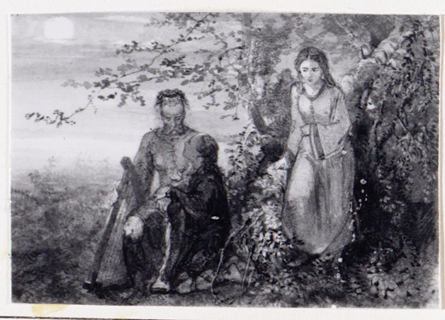 - De blinde zanger Bernlef zit in het maanlicht bij een bosje te spreken met de jonge Jelger die aan zijn zijde knielt. Hilda komt voorzichtig naderbij om hun in hun gesprek te verrassen (780-820 na J.C.), 1860
