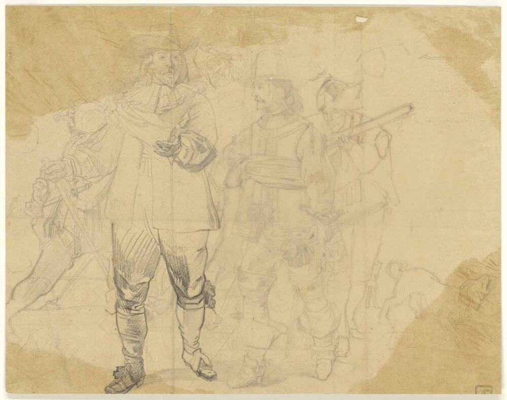 - Studie naar de middelste figuren op de Nachtwacht (naar: Rembrandt), 1840 - 1881