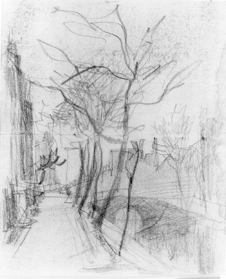- Een Amsterdamse gracht bij nacht (recto). Lopend figuur met grote emmer of baal (verso), 1840 - 1881