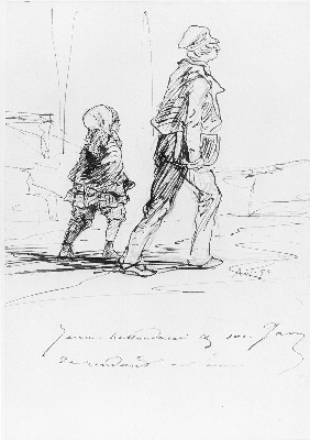 - Een klein meisje en een jongen op weg naar school in Amsterdam, 1855