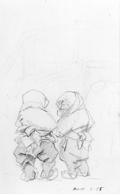 - Twee kinderen met hoofddoeken, op de rug gezien (Amsterdam), 1855