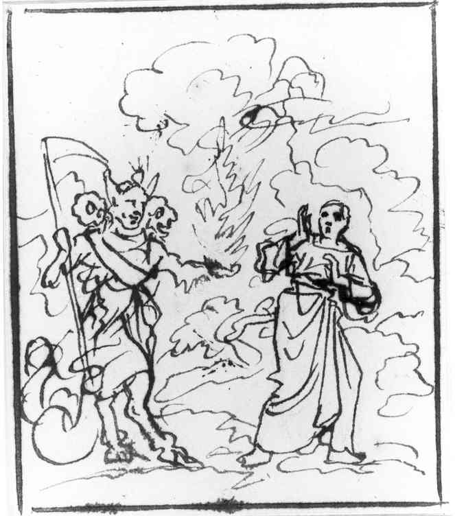 Voorstudie voor prent 5 uit "Jezus en de ziel" door Jan Luyken- Trefwoorden