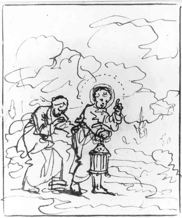 Voorstudie voor prent 13 uit "Jezus en de ziel" door Jan Luyken- Trefwoorden