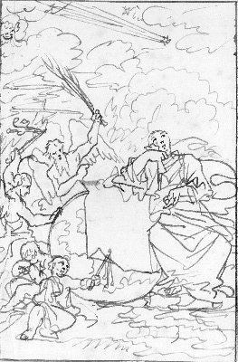 Voorstudie voor titelprent "Stichtelyke rymen op verscheide stoffen" door Jan Huygen- Trefwoorden