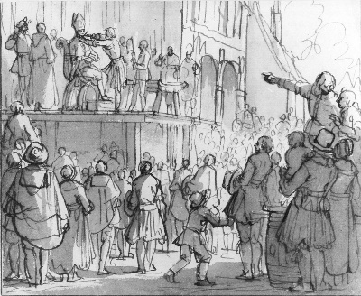 Voorstudie voor prent 6 uit "Beschryvinge van Amsterdam" door C. Commelin- Trefwoorden