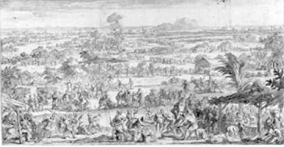 Voorstudie voor prent in "Mosaize Historie der Hebreeuwse Kerke" [Dl. II]- Trefwoorden