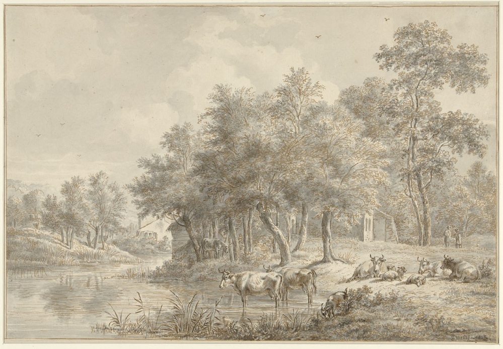 De invloed van de zeventiende eeuw is duidelijk zichtbaar in beide landschappen. De compositie van het landschap met het liggende en staande vee lijkt sterk op bekende schilderijen van Potter, Cuyp en andere schilders van vee.