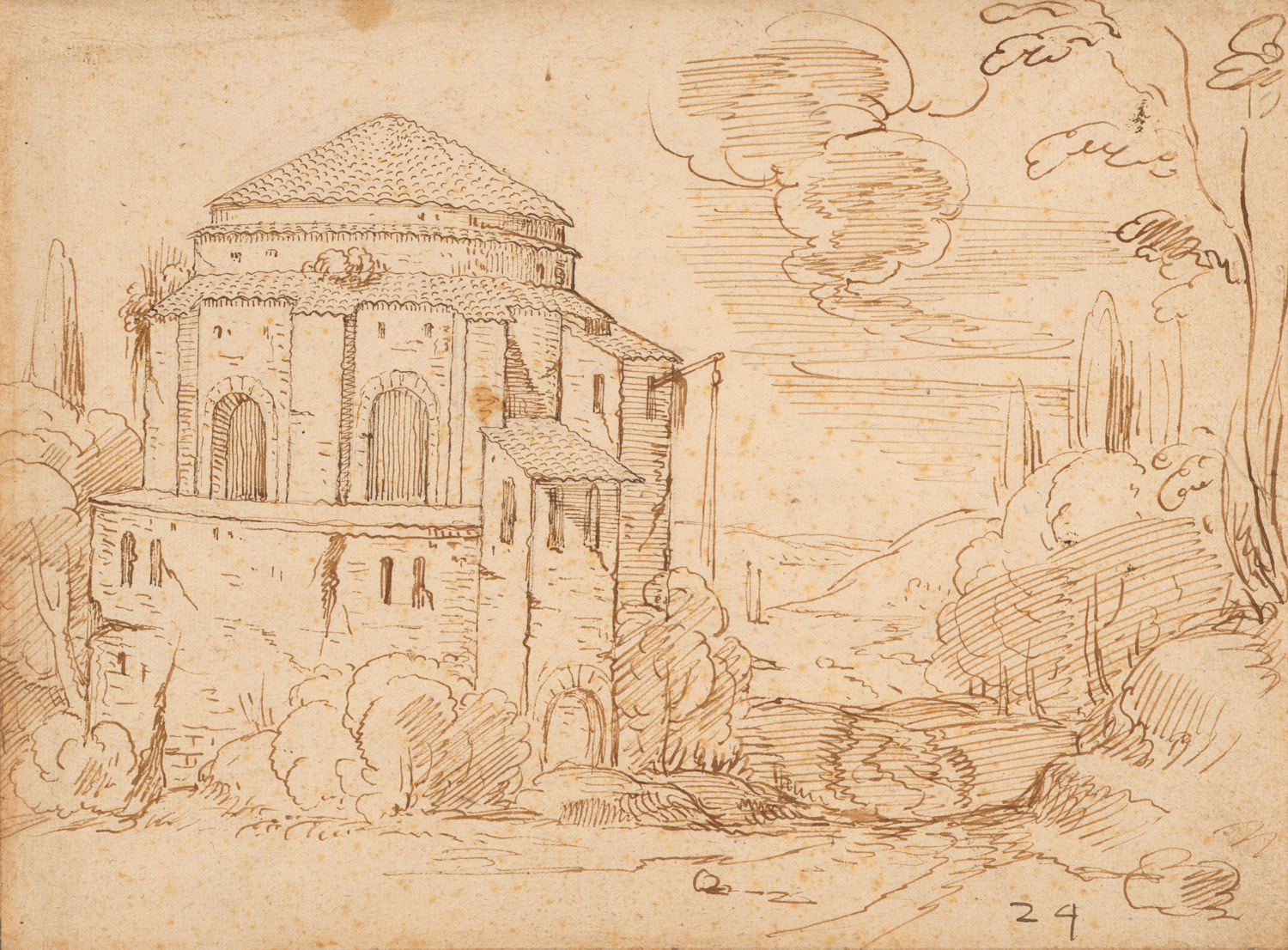 Coll. A.W.M. Mensing (volgens inventariskaart); niet terug te vinden in de catalogus van de veiling Amsterdam (Fr. Muller / Mensing) 27-29 april 1937. Aankoop 1937? Het jaarverslag over dat jaar, p. 15, vermeldt: 'Nerlandsche school, omstreeks 1610, Italiaans landschap, pen.' Dit kan over dit of het inventarisnummer TA 18038 gaan