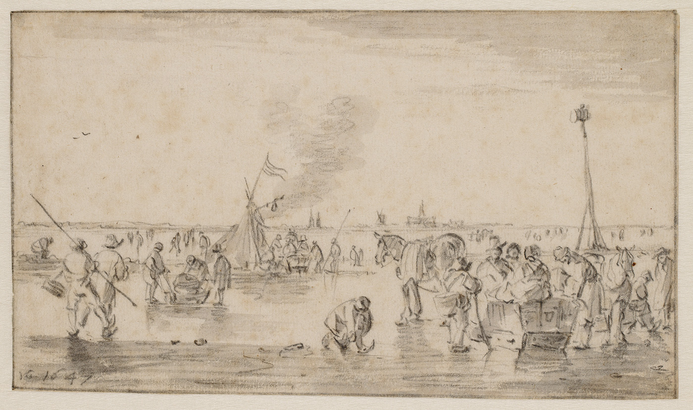 Onbekende veiling, nr. 97; G. Leembrugge, veiling Amsterdam (C.F. Roos, W.J.M. Engelberts, A. Lamme, D.A. Lamme en C.F. Roos jr.) 5 maart 1866, in nr. 275, samen met vier andere tekeningen va Van Goyen (zie Beck 1972 nrs. Z. 243, Z. 258, Z. 608a en Z. 7779), aan Ellinckhuysen; J.F. Ellinckhysen, veiling Amsterdam (Fr. Muller & Co. en C.M. Gogh) 19 nov. 1878, e.v.d. nr. 144 (aan Coster); Auguste Coster, veiling Brussel (Fieves) 17 mei 1907 e.v.d., nr. 658 samen met een tweede tekening door Van Goyen (zie Beck 1972, nr. Z 681a) 380 B. francs aan Fr. Muller (Na de veiling door R.W.P. de Vries van de Fa. Muller overgenomen); veiling H.L. Rompel, A. J. Nijland e.a., Amsterdam (R.W.P. de Vries) 14 april 1908, nr. 114 met afb. (Fl. 215,- aan Haverkamp); veiling Bellingham-Smith, De Rodiano, Della Faille de Waerloos e.a., Amsterdam (A.W.M. Mensing) 5 juli 1927, nr. 206 met afb. (fl. 475,-); bruikleen L. de Bruijn; geschenk Mevr. J.G. de Bruijn- van der Leeuw, Muri, 1960