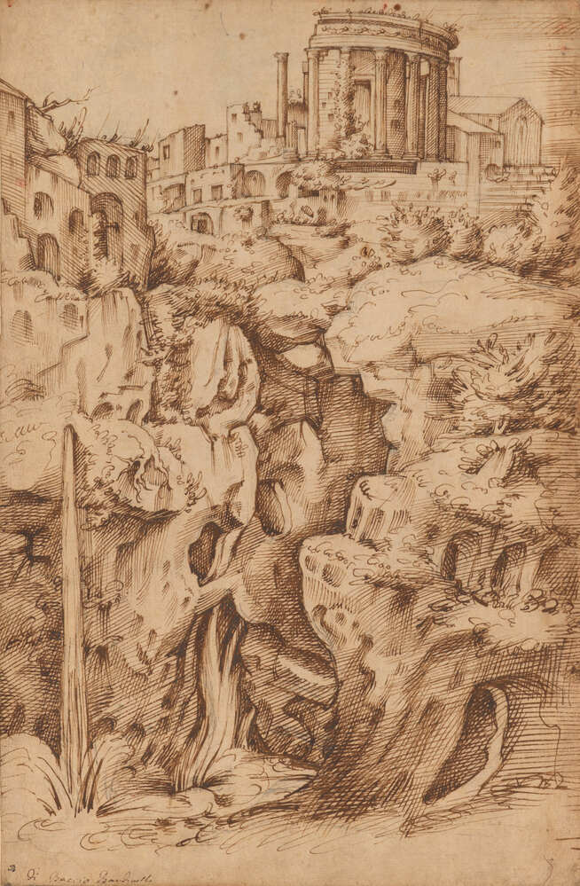 - Gezicht op de tempel van Venus in Tivoli, 1552 - 1591