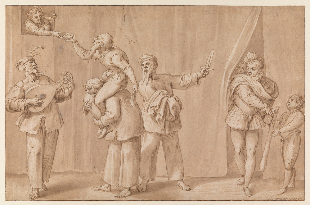 Wellicht coll. de Vos, veiling Amsterdam (J. de Vries, A. Brondgeest, E.M. Engelberts en C.F. Roos) 30 okt. 1833 e.v.d., cat. p. 67, in Omslag Z (A Franks); Coll. Mr. Gérard Leembruggen Jz., veiling Amsterdam (C.F. Roos, W.J. M. Engelberts, A.J. Lamme, D.A. Lamme, C.F. Roos Jr.) 5 maart 1866 e.v.d., nr. 747: 'Ambrosius Vrancx. Des comédiens du XVII siècle.' (Fl. 6,50 aan Ellinckhuysen); Coll. J.F. Ellinckhuysen, veiling Amsterdam (Fr. Muller) 16-17 april 1879, nr. 301: 'Ambrosius Vrancx. La Sérénade. Scène tirée d´une comédie du 16e siècle.' (Fl. 30,-); Coll. P. Langerhuizen, veiling Amsterdam (Fr. Muller) 24 april 1919 e.v.d., nr. 876 (zelfde omschrijving als in veiling Ellinckhuysen); Coll. A.W.M. Mensing, veiling Amsterdam (Mensing / Fr. Muller) 27-29 april 1937, nr. 803 (zelfde omschrijving als in veiling Ellinckhuysen); Aankoop 1937 in het jaarverslag over dat jaar, p. 15