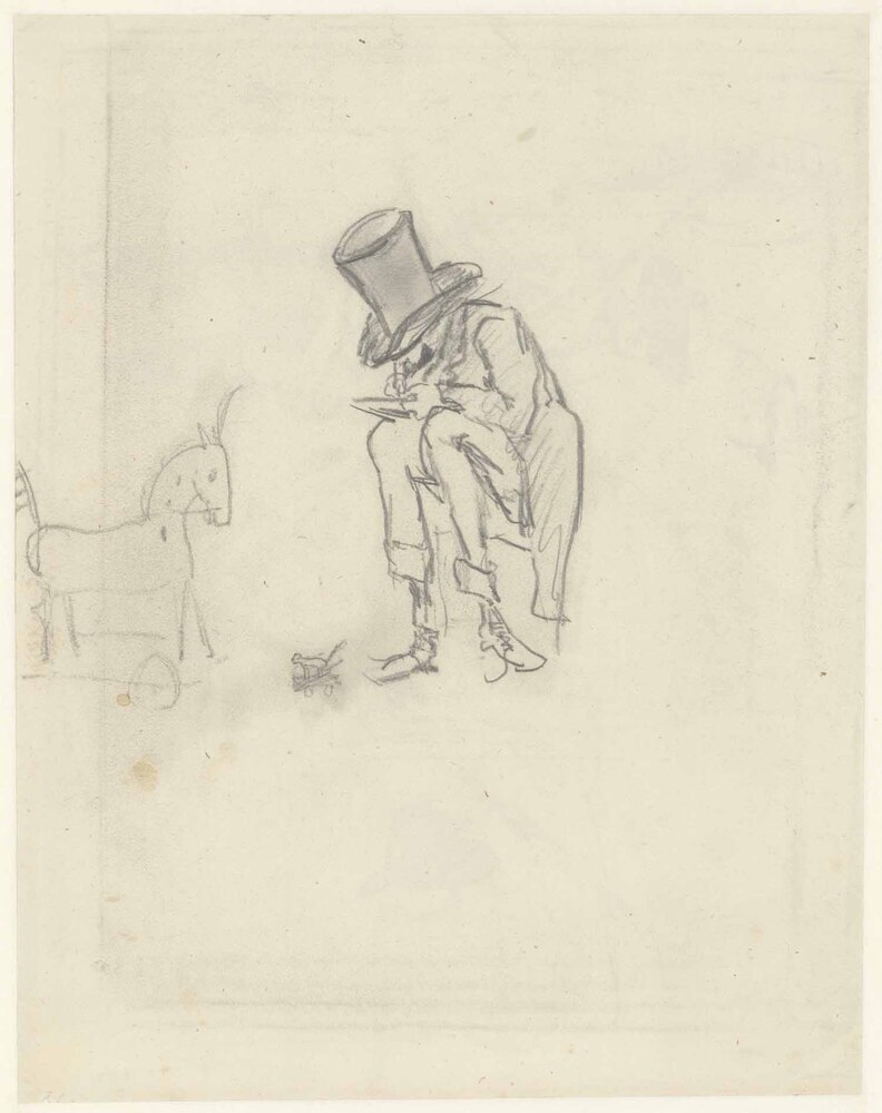 - Teekenaar en speelgoedpaardje; verso: boer met hark, studies, 1844 - 1903