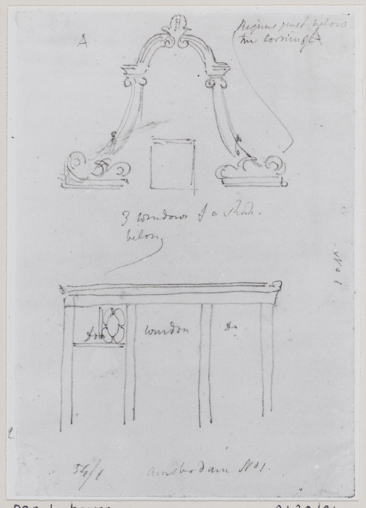 Schetsboek, bestaande uit katern van 16 bladen waarin 33 tekeningen zijn opgeplakt en waarin vier losse tekeningen zijn geborgen. Het zijn zeer schetsmatige tekeningen voorzien van aantekeningen met betrekking tot kleur, vlakverdeling, etc. Bij groot deel van tekeningen betreft het voorstellingen van buurt rond Haarlemmersluisen Haringpakkerstoren (in 1829 afgebroken).