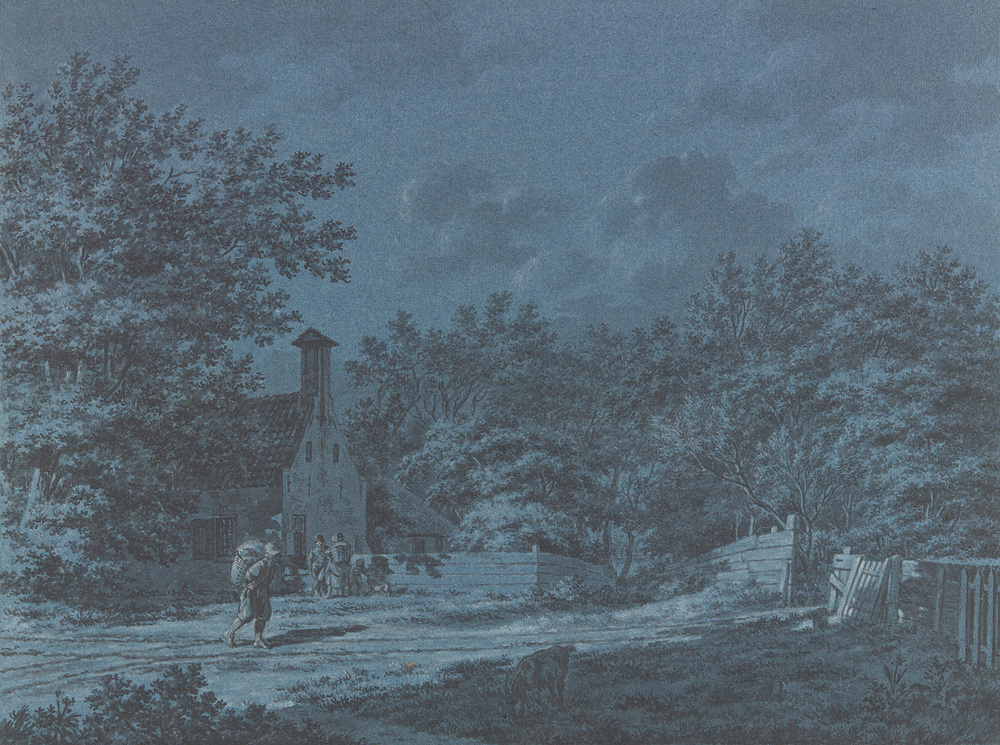 Er zijn van Jacob Cats weinig tekeningen bekend op blauw papier. Vermoedelijk reserveerde hij deze techniek, waarbij hij op de donkere ondergrond zwart krijt en inkt gebruikte, bij voorkeur voor zijn landschappen bij maanlicht. Een blad met Het dorpsperk te Hillegom bij maanlicht is eveneens uitgevoerd op blauw papier. Voor een Winternacht in een Hollandse stad koos Cats wit papier als ondergrond, omdat hij deze in waterverf uitvoerde.
