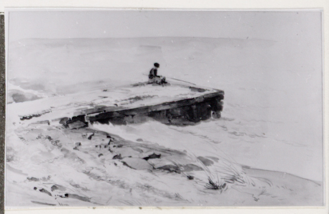 - Vissersjongen op een aanlegsteiger. Verso: idem., 1844 - 1893