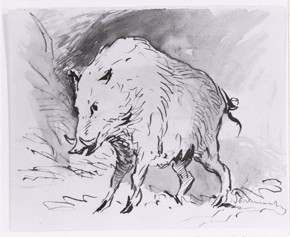 - Schets van een everzwijn. Schets van een haas (verso), 1829 - 1881