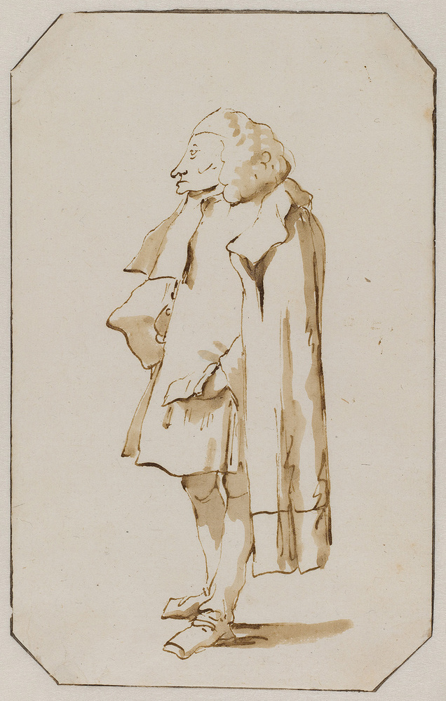 - Karikatuur van een staande man in een cape, 1740 - 1759