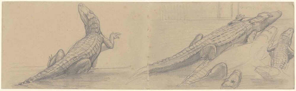 - Studieblad met krokodillen uit de serie: "natura artis magistra", 1858 - 1899
