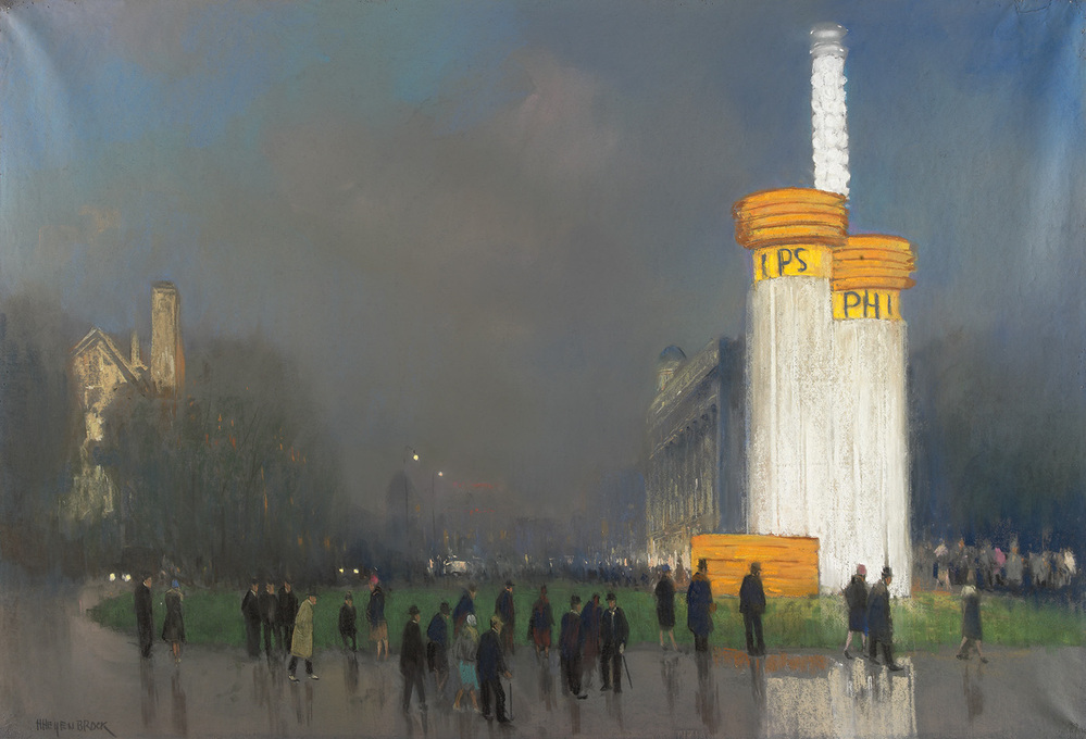 - Het Leidseplein bij avond met de Philipslichtzuil tijdens de Edison lichtweek, 21-26 oktober 1929