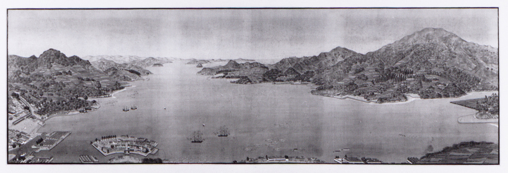 - Hollandse en inlandse schepen in de baai van Nagasaki met op de voorgrond het kunstmatige eiland Desima., 1800 - 1899