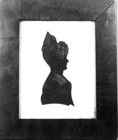 Miniatuur silhouetportret ingelijst in houten lijstje.- HerkomstObjecten afkomstig uit legaat Mej CE van Hoorn.