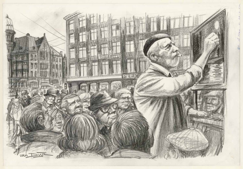 - De sneltekenaar Jan de Jong (1888-1968) op de Dam in Amsterdam
