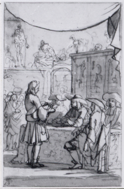 - Voorstudie voor de titelprent " 't Nieuwe examen der chirurgie", 1693