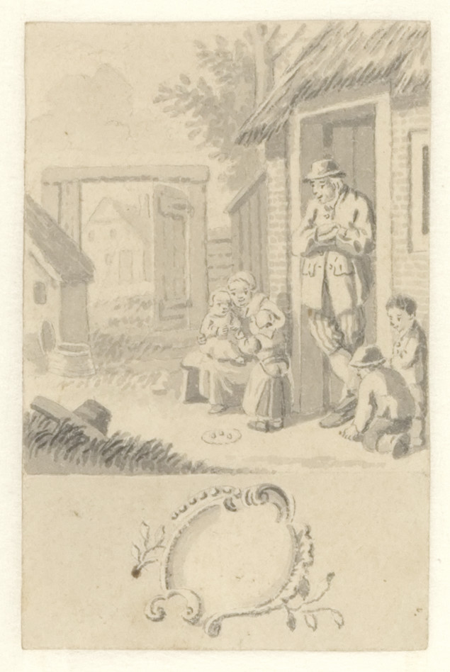 - Ontwerpen voor de zestig kaartjes van een loterijspel (Knikkerende kinderen voor een boerderij), 1740 - 1760