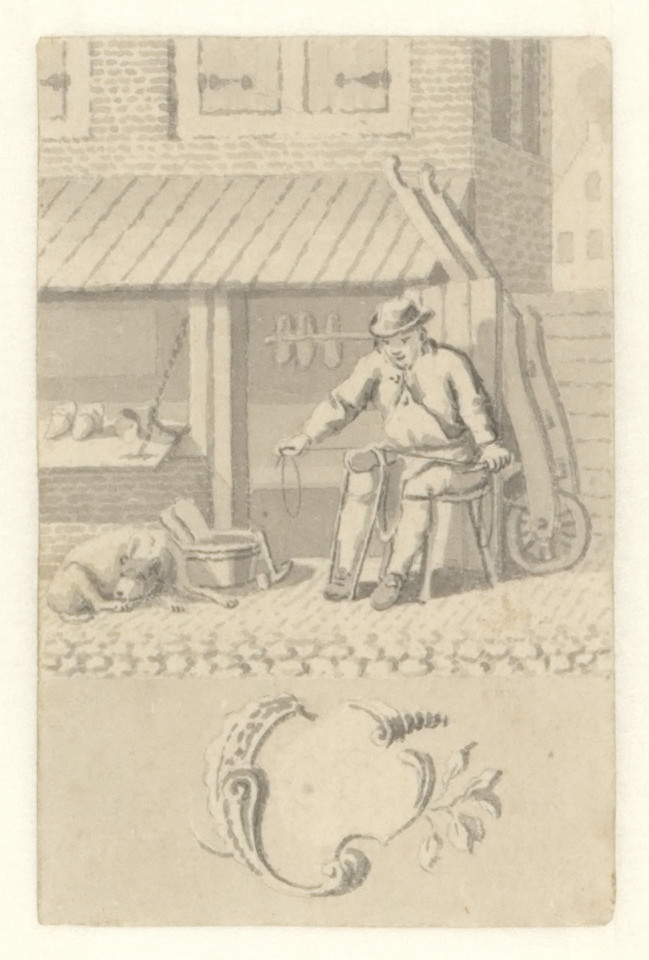 - Ontwerpen voor de zestig kaartjes van een loterijspel (Schoenmaker voor zijn werkplaats), 1740 - 1760