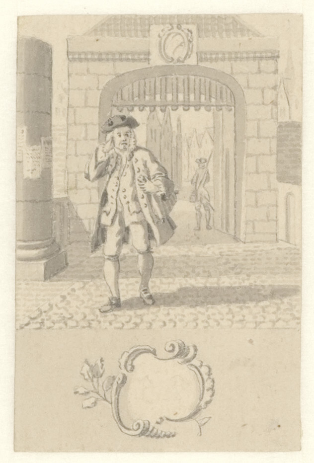 - Ontwerpen voor de zestig kaartjes van een loterijspel (Man met op de achtergrond een stadspoort), 1740 - 1760